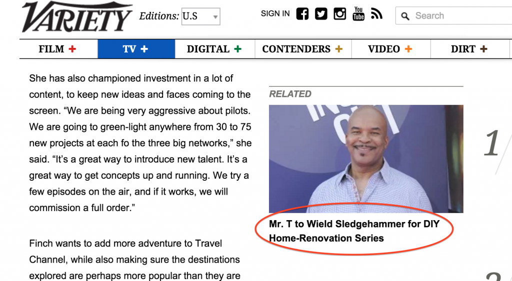 Variety’s website put up a picture of actor/comedian David Alan Grier with a caption meant for role model, Mr. T.